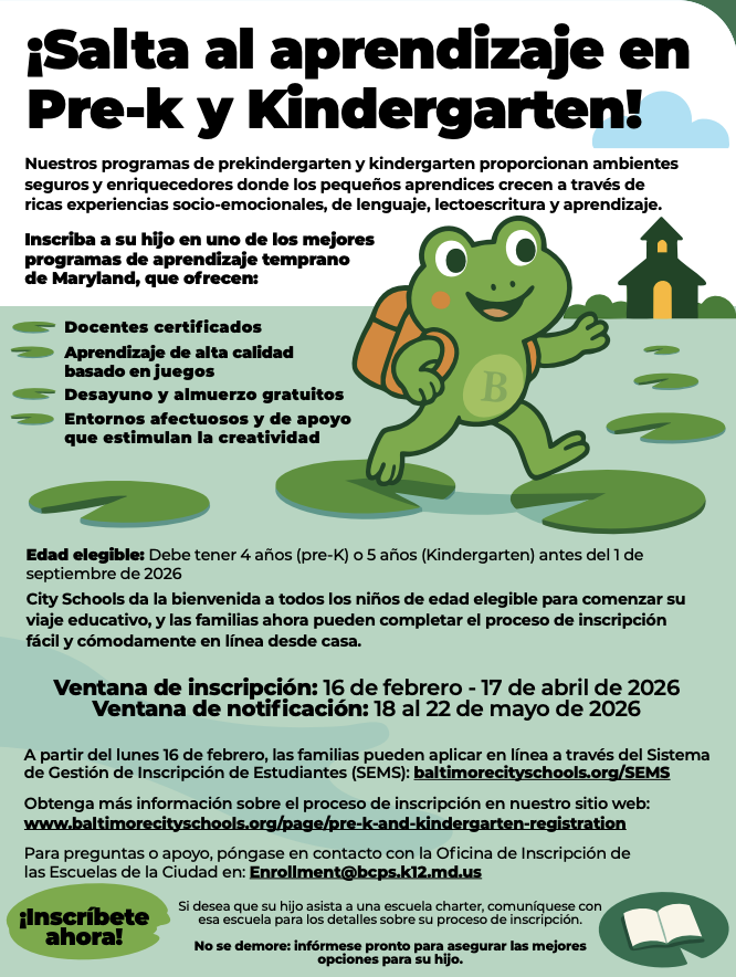¡La inscripción en Pre-K abre el lunes 16 de febrero! Sería un honor educar a sus estudiantes y dar la bienvenida a su familia a la Escuela Primaria Commodore John Rodgers.